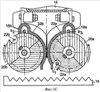 На стадии, изображенной на фиг.3А, вторичный желоб 22а повернулся в радиальное положение относительно первичного желоба 18а и состыковался с ним, что позволило стержню b1 переместиться во вторичный желоб. Вторичный желоб 22b вышел из положения соприкосновения с первичным желобом 18b, который в это время принял второй стержень b2.