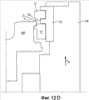 На Фиг.12D станок показан в положении «отделения после предварительного загибания кромки», достигнутом посредством вертикального перемещения подвижной части 28 вверх (стрелка Dz) так, чтобы инструмент 11 для предварительного загибания кромки был отодвинут от кромки 3а панели 1.