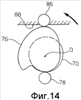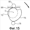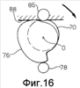 Вал 62 образует концевую часть 70 (Фиг.6), которая имеет наружную эксцентрическую поверхность и выступает из опорного корпуса 66 по направлению к зоне обработки. На эксцентриковой части 70 закреплен кольцевой элемент 72, контур которого проходит параллельно контуру наружной эксцентрической поверхности части 70. Как вариант, может быть использована цилиндрическая концевая часть 70, соосная с валом 62 и кольцевым эксцентриковым элементом 72.