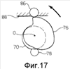 На Фиг.11 показан контур 76а кулачка 76, при этом центр вращения кулачка обозначен как 0. С другой стороны, на Фиг.13-17 показаны угловые положения, достигаемые кулачком 76 при различных вышеописанных рабочих положениях.