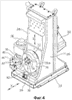 Как показано на Фиг.7 и 8, кривошипный механизм 36 содержит вертикальный входной вал 38, соединенный наверху с узлом 34 из электродвигателя и зубчатой передачи для вращения последним. Вал 38 с возможностью вращения установлен посредством втулки 46 на опорном корпусе 40, который винтами 44 прикреплен к подвижному основанию 24 в его фланцеобразной части 42. Вал 38 в своей нижней части образует цилиндрический выступ 48, который действует в качестве кривошипа и расположен эксцентрично относительно оси вращения вала и на котором с возможностью вращения установлен ролик 50. Ролик 50 вместе с объединенным с ним выступом 48 проходит вниз через сквозное отверстие 52, выполненное в подвижном основании 24 (Фиг.9), и направляется между парой вертикальных поверхностей 54а, которые ориентированы перпендикулярно продольному направлению X и образованы соответствующими направляющими элементами 54, прикрепленными к неподвижному основанию 22.