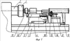 Станок для закатки концов трубных заготовок работает следующим образом. Трубная заготовка 17 устанавливается на призму 12, затем с помощью пневмоцилиндра 9 вводится в полость шпинделя 2 на требуемую глубину и зажимается пневмопатроном 3 шпинделя. Включается вращение шпинделя, заготовке придается вращательное движение, после чего с помощью гидроцилиндра 6 и тяги 7 поперечному суппорту 5 сообщается поступательное движение в плоскости, перпендикулярной оси шпинделя. В процессе перемещения поперечного суппорта 5 отрезной нож 11 подрезает конец трубной заготовки до требуемой длины вылета, после чего начинается его закатка формующим инструментом 15. В процессе закатки опорный ролик 14 перемещается по рабочей поверхности копира 8, передавая через кронштейн 13 требуемое направление перемещения продольному суппорту 10 и установленному на нем формующему инструменту 15. Перемещаясь в двух взаимно перпендикулярных направлениях, формующий инструмент производит формование конца трубной заготовки с получением готового изделия с требуемой формой закатанной части. При этом пружина 16 либо дополнительно растягивается (при перемещении продольного суппорта в сторону шпинделя 2), либо ее исходное растяжение несколько уменьшается (при перемещении продольного суппорта в сторону пневмоцилиндра 9). После окончания процесса закатки шпиндель 2 останавливается, пневмопатрон 3 освобождает готовое изделие, которое с помощью толкателя (условно не показан), вводимого в полость шпинделя, выталкивается на призму 12 и удаляется из рабочей зоны станка.