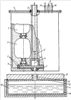 При достижении температуры 1500°С сталь вытесняют в формы 1, расположенные в герметичном контейнере 3, с заданной скоростью при одновременном вакуумировании ее. После заполнения форм 1 расплавом стали и в начале поступления его в прибыльную часть вакуум отключают и в контейнер 3 подают газовое давление в пределах 0,5 МПа через газопровод 15. Одновременно поршень 6 под действием силового механизма (на чертеже не указано) перемещают вниз, сжимая жидкий расплав в камере прессования 5. Механическое давление позволяет воздействовать на металл отливки в нужный момент времени по заданной программе (создается давление изнутри), а газовое давление противодействует механическому и воздействует на металл отливки снаружи. Несмотря на узкий интервал кристаллизации удается создать в металле затвердевающей отливки необходимое давление, в необходимый момент времени.