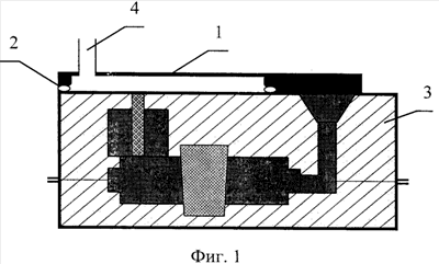 На фиг.1 и 2 изображена вакуумная плита 1, прикрепленная к форме 3 и оснащенная на стыке уплотнителем 2, также имеется труба 4 для подключения с системой вакуумирования.