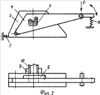 Для облегчения перемещения механизма разделения гнутых профилей 3 он перемещается по столу 2 пресса 1, взаимодействуя с пружинами 7. После того как зазор будет выбран, неподвижный нож 6 останется в данном положении до окончания разделения профиля вместе с механизмом разделения гнутых профилей 3, а подвижный нож 5, расположенный в кулисе 4 (совместно с ней), перемещается по дуге окружности, разделяя профиль 10 беззазорно под углом 42° (фиг.2). После разделения профиля 10 заготовка 18 (фиг.9) задатчиком 16 подается в штамп 11 с матрицей 12, где прижимом 14 фиксируется заготовка 18 по двум противоположным углам, расположенным по диагонали, на возвышениях 15 в матрице 12.