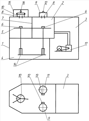 Принципиальная схема установки (вид сбоку и вид сверху) показана на чертеже.