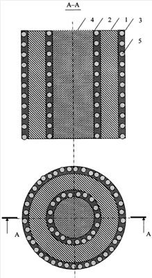 Предлагаемое изобретение иллюстрируется чертежом, где показан вид проволоки с композиционным покрытием и минеральным сердечником из шлакообразующих и газообразующих компонентов. Предлагаемая проволока состоит из металлической трубки 1, на поверхностях которой располагаются внешнее и внутреннее композиционные покрытия 2, 3, состоящие из металлической матрицы с распределенными по объему матрицы частицами активирующего флюса 5. Полость металлической трубки 1 заполнена смесью шлакообразующих и газообразующих компонентов 4.