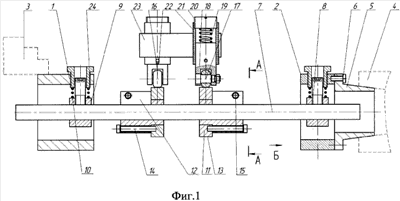 Предлагаемое изобретение относится к области металлообработки, в частности к изготовлению длинномерных маложестких осесимметричных валов, и может быть использовано в механосборочных предприятиях.