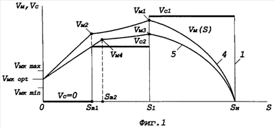 На последующих этапах работы действие возмущающего фактора будет нарастать и для его компенсации необходимо будет изменить припуск на выхаживание с Sв1 на Sв2. Фазовая траектория 5 при этом пройдет через точки Sн – Vм3 – Vм4 – Vмк opt и положение конечной точки фазовой траектории сохранит свое значение Vмк=Vмк opt.