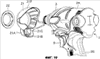 Фиг.12 – общий вид с пространственным разделением деталей, показывающий крепление осветительного устройства на кожухе ударного механизма ударного инструмента по фиг.10;