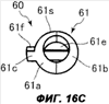 Как показано на фиг.14, в кармане 64а для осветительного устройства выполнено гнездо (отверстие, полость) 64b для размещения осветительного устройства 60. Гнездо 64b имеет внутреннюю поверхность 64i. Как показано на фиг.15, в кармане 64а в направлении спереди назад выполнена прорезь 64с. Прорезь 64с проходит через всю выступающую часть кармана 64а в том направлении, в котором осветительное устройство 60 вставляется в гнездо 64b.