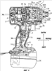 Курковый выключатель 6 находится в верхней части рукоятки 2В и предназначен для включения подачи тока на двигатель 4. Переключатель 7, соединенный с курковым выключателем 6, находится в верхней части рукоятки 2В. Переключающий рычаг 8, приемная часть 9 батареи, схемная плата 10 и подводящие провода 11 и 12 находятся в нижней части рукоятки 2В. Отсоединяемая аккумуляторная батарея 13 присоединена к нижнему концу рукоятки 2В. Электропитание подается от аккумуляторной батареи 13 в двигатель 4 с помощью двух проводов 11, переключателя 7 и полевого транзистора 14. Осветительное устройство 15 прикреплено к нижней передней части кожуха 3 ударного механизма. Электропитание подается от аккумуляторной батареи 13 в осветительное устройство 15 с помощью схемной платы 10 и двух проводов 12.