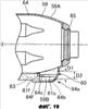 Как показано на фиг.13, осветительное устройство 60 содержит колпачок 61, описанный далее (см. фиг.16А-16С), осветительный элемент 62, представляющий собой СИД или подобный элемент, и подводящий провод 63, обеспечивающий электрическое соединение осветительного элемента 62 со схемой электропитания в корпусе 53 рукоятки. Как показано на фиг.14, карман 64а для осветительного устройства 60 сформирован как часть кожуха 64 ударного механизма на нижней внешней поверхности кожуха 64 ударного механизма.