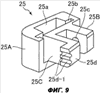 Как показано на фиг.9, на конце лапки 25С имеется крепежный элемент 25d, являющийся одним целым с лапкой, так что лапка 25С и крепежный элемент 25d на виде сверху имеют L-образную форму. Два установочных паза 25d-1, проходящие горизонтально в направлении спереди назад, выполнены на боковом торце крепежного элемента 25d в его верхней и нижней частях.