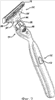 Упругая шайба 19 может быть выполнена из любого материала, который бы ослаблял шум и вибрацию, позволяя при этом кнопке скользить вдоль направляющих без чрезмерного трения. Пригодные к использованию материалы должны быть также износоустойчивыми, так как на протяжении срока жизни бритвы кнопка все время движется взад-вперед. К пригодным материалам относятся эластомеры с низким коэффициентом трения, такие как фторопласт. В некоторых вариантах реализации изобретения упругая шайба 19 содержит верхний слой, выполненный из эластомера, например SEBS (стирол-этилен-бутилен-стирольный блоксополимер), и прилегающий к нижней поверхности кнопки 50, и нижний слой, прилегающий к поверхности 17 ручки 12 и выполненный из низкофрикционного материала, предпочтительно фторопласта. В этом случае эластомер обеспечивает подрессоривание и ослабление вибрации, в то время как фторопласт обеспечивает низкое трение скольжения. Предпочтительными являются эластомеры, которые настолько мягкие, чтобы ослабить вибрацию, и все же достаточно твердые, чтобы не быть липкими. Некоторые эластомеры из числа предпочтительных имеют твердость в диапазоне примерно 30-70 А по Шору. Обычно предпочитают выполнять верхний слой более толстым, чем нижний, соотношение толщины слоев выбирают так, чтобы обеспечить желаемый баланс между ослаблением вибрации и износоустойчивостью поверхности с низким коэффициентом трения. Два слоя можно получить, используя любой подходящий способ изготовления, например совместное прессование или совместную экструзию. Нет необходимости в том, чтобы оба слоя прилипали друг к другу; при желании они могут быть размещены в бритве просто один слой на другом. В качестве альтернативы упругая шайба может быть выполнена полностью из одного полимера, который обеспечивает обе необходимые характеристики, например из фторопласта, обладающего упругими свойствами. Обычно предпочитают, чтобы шайба 19 была по возможности тонкой, обеспечивая при этом требуемое ослабление вибрации/шума и сохраняя долговечность.