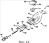 На фиг.4 в аксонометрии показан вид спереди частично разобранной ручки бритвы, изображенной на фиг.1. На фиг.4А показан вид дополнительной разборки той же части ручки.