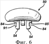 Как показано на фиг.6, кнопка 50 содержит пару направленных вниз выступов 54. Каждый из выступов 54 имеет направленный вовне паз 84 для скольжения по соответствующим направляющим держателя 42 внутри отверстия 52 (не показаны). Верхние поверхности 85, определяющие пазы 84, скользят по верхним поверхностям направляющих, при этом нижние поверхности 91, определяющие пазы 84, осуществляют захват или соединяются впритык с нижними поверхностями направляющих (внутри отверстия 52). Выступы 54 и то, как они взаимодействуют с держателем 42, детально описаны в патенте US 6029354. Выступы 54 упираются в поверхности 94 эжектора 48, когда кнопку 50 сдвигают к дистальному концу 11 ручки 12, заставляя эжектор 48 выдвигаться вперед, как это описано выше. Пружина 46 (фиг.4А) проходит между выступами 54.