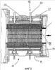 Другая форма выполнения изобретения представлена на фиг.5 и 6, в которых блок 16′ сегментов изображен более точно. Этот блок 16′ сегментов включает в себя два различных, расположенных, соответственно чередуясь, варианта выполнения пластин 18′ и 18 . Каждая пластина имеет два отверстия и с их помощью они установлены в ряд на крепежных штангах 52 и 54. При этом отдельные пластины 18′ и 18 отделены друг от друга дистанцирующими элементами. На концах крепежных штанг 52 и 54 имеются внутренние резьбы, так что при введении винтов возможно стягивание всех сегментов 18′ и 18 между собой.