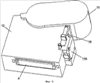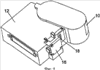 На фиг.7а и 7b показана работа при закрывании крышки 10. На фиг.7а показан принтер в открытом положении. При закрывании крышка поворачивается в направлении по часовой стрелке, в результате чего печатная головка 14, установленная на участке 40 установки печатной головки, проходит через отверстие в держателе 42 кассеты и через отверстие в кассете 106 с красящей лентой. По мере поворота крышки 10 она взаимодействует с держателем 42 кассеты, в результат чего держатель кассеты и кассета устанавливаются в участке установки, и держатель проталкивает кассету в положение печати. В этом закрытом положении, показанном на фиг.7b, печатная головка взаимодействует с валиком внутри кассеты 4 с лентой, причем лента и красящая лента располагаются между ними. Крышка 10 удерживает кассету 106 с красящей лентой в этом положении после закрывания.