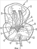 Согласно фиг.1b, 2 и 3 устройство безопасности, являющееся объектом изобретения, отличается тем, что нижние концы (1) ремней (2) после пропускания через прорези (4) пряжки (5), которой прикрепляется полоска (6) промежности, выступают через кресло (7) через отверстия (8), предусматриваемые на задней части сторон сиденья (9) кресла, и соединяются вместе в точке (10) под этим последним, образуя тем самым полоску (11), которая пропускается через натяжное устройство (12), а ее конец (13) выступает за переднюю часть сиденья (9) кресла.