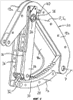 На фиг.7 представлен вид сбоку модифицированного варианта осуществления поддерживающего устройства для опускаемой багажной полки самолета, при этом багажная полка пуста и находится в полностью опущенном, т.е. открытом положении.