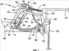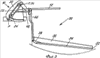 Кронштейн 20 в данном случае образован двумя пластинами 19а, 19b, которые отстоят друг от друга, имеют форму бумеранга и другим концом прикреплены к задней стороне багажной полки 12. Приблизительно в середине кронштейна 20, т.е. в области его выступающей части, которая образована за счет V-образной формы кронштейна, к оси F вращения шарнирно прикреплен один конец пневматической пружины 22, которая используется для создания поддерживающего усилия, которое и должно прикладывать поддерживающее устройство 10. Другой конец пневматической пружины 22 шарнирно прикреплен к одному концу (на фиг.1 нижнему) качающегося рычага 24, другой конец которого (на фиг.1 верхний) шарнирно прикреплен к цапфе 26, выступающей от несущей пластины 18 и определяющей геометрическую ось S1 шарнира. В рассматриваемом варианте осуществления изобретения качающийся рычаг 24 имеет U-образное поперечное сечение (см. фиг.2).