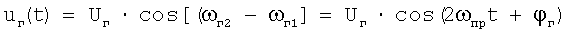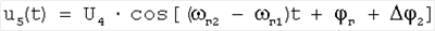 Напряжения uг1(t) и uг2(t) со вторых выходов гетеродинов 29 и 30 подаются на два входа перемножителя 37, на выходе которого образуется напряжение
