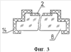 Второй светопровод представляет собой основание 8, например, в виде прямоугольника (форма основания определяется местом установки световой панели: на приборной доске – прямоугольная, на потолке – трапециевидная или скругленная и т.п., и объемом высвечиваемой информации) с участком 9 (например, в виде углубления) для установки и центрирования листовой детали 2. В зависимости от назначения световой панели источники света могут находиться как внутри тела основания 8, так и за его пределами (как показано на Фиг.1).