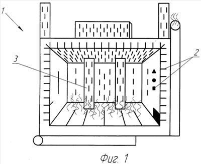 На фиг.1 показана схема обжига дома из глины.