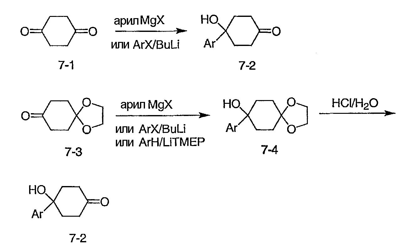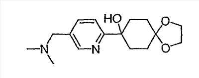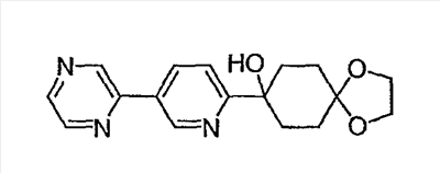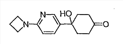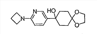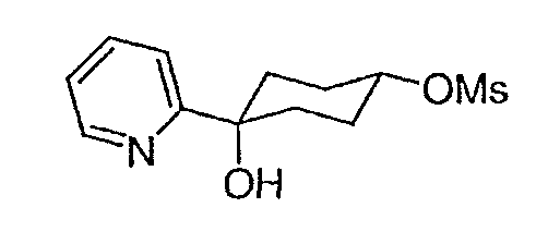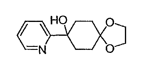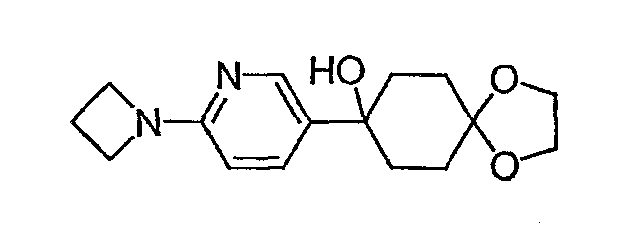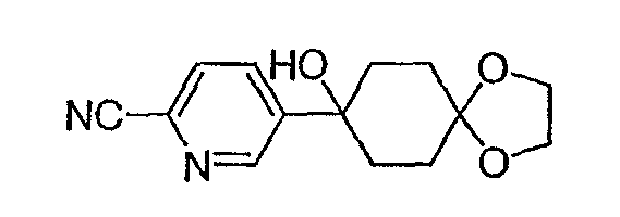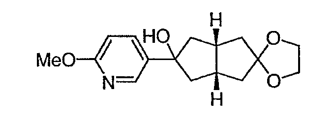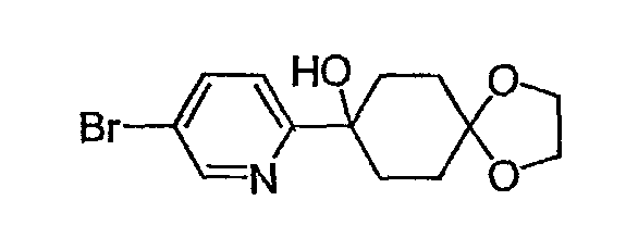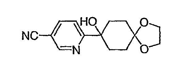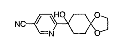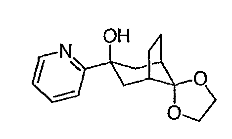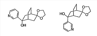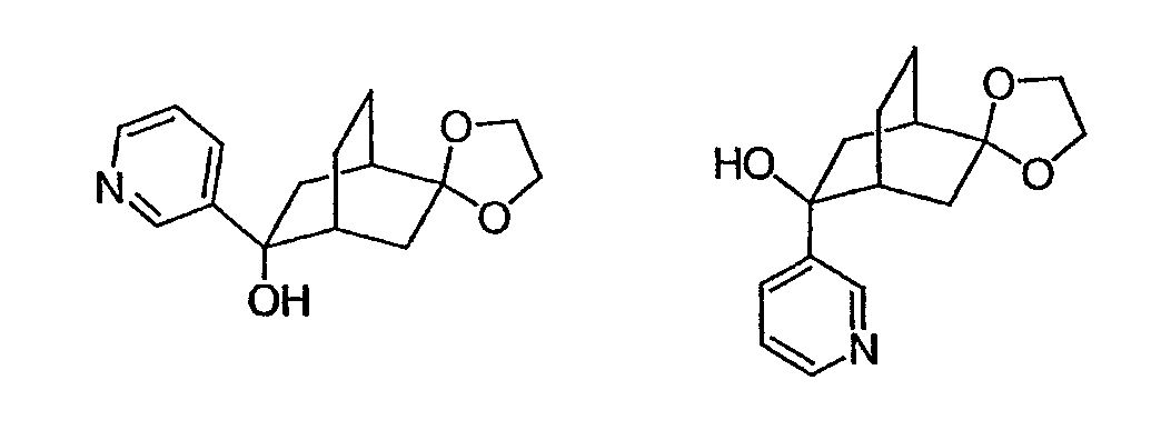 Раствор 3-бромпиридина (1,13 г, 7,13 ммоль) растворяют в сухом эфире в атмосфере азота, охлаждают до -78°C и затем по каплям добавляют н-бутиллитий (4,50 мл, 7,13 ммоль, 1,6М в гексане). Через 30 минут по каплям добавляют раствор 5H-спиро[бицикло[2.2.2]октан-2,2′-[1,3]диоксолан]-5-она (0,65 г, 3,56 ммоль, J. Org. Chem. 1991, 56, 1052-1058) в эфире и полученную смесь перемешивают в течение двух часов при -78°C. Смесь затем нагревают до 0°C и разбавляют этилацетатом. Органический экстракт промывают NaHCO3/H2O и насыщенным раствором соли и затем сушат над MgSO4, фильтруют и концентрируют. Остаток подвергают хроматографии на силикагеле, используя этилацетат в качестве элюента, получая два изомерных продукта в виде белого твердого вещества: продукт с более высоким Rf, 0,294 г (32%); продукт с более низким Rf, 0,220 г (24%). Продукт с более высоким Rf: 1ЯМР (CDCl3) : 8,87 (с, 1H), 8,49 (д, 1H), 7,91 (дт, 1H), 7,27 (м, 1H), 3,92 (м, 4H), 2,69 (дт, 1Н), 2,20 (м, 1H), 1,85-2,15 (м, 3H), 1,60-1,83 (м, 4H), 1,50 (м, 1Н). Продукт с более низким Rf: 1ЯМР (CDCl3) : 8,80 (с, 1H), 8,50 (д, 1H), 7,86 (дт, 1H), 7,29 (м, 1H), 3,90-4,10 (м, 4H), 2,44 (дт, 1H), 2,33 (дд, 1H), 2,15-2,27 (м, 2Н), 2,00 (м, 1H), 1,75-1,88 (м, 2H), 1,70 (м, 1H), 1,51 (м, 2H), 1,34 (м, 1H).