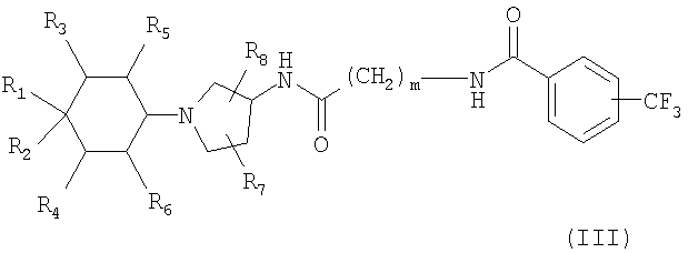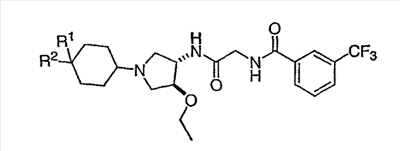 11. Соединение по п.1, представляющее собой N-[2-({(3S,4S)-4-этокси-1-[4-гидрокси-4-(3,4-метилендиоксифенил)циклогексил]пирролидин-3-ил}амино)-2-оксоэтил]-3-(трифторметил)бензамид.