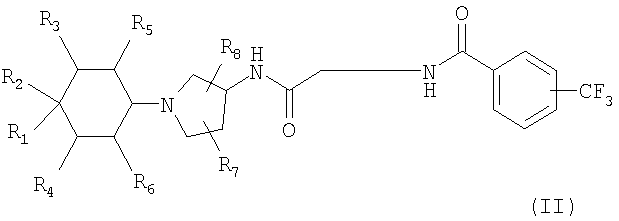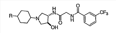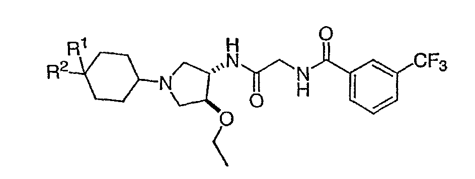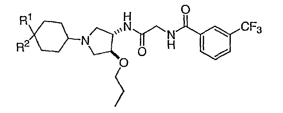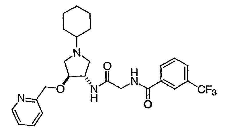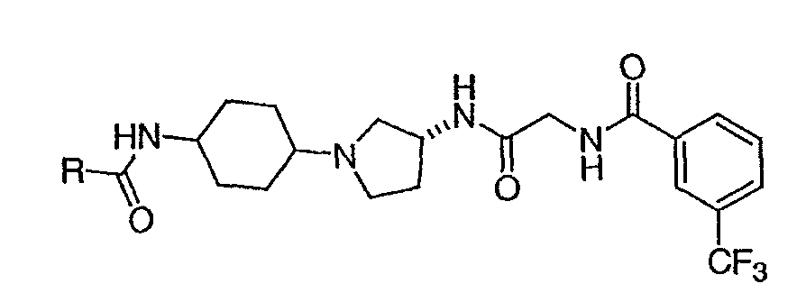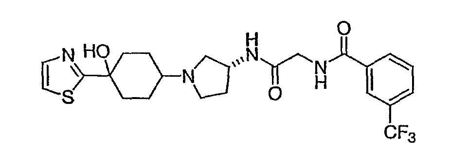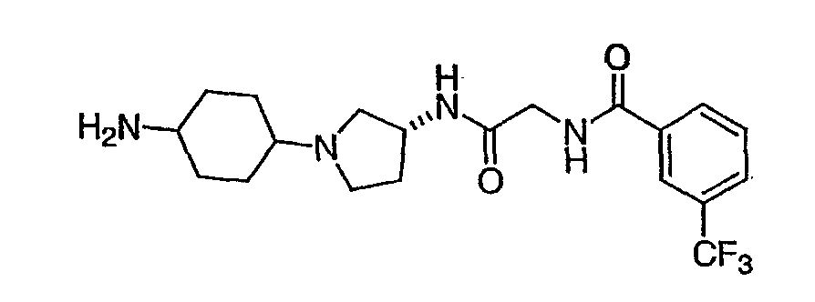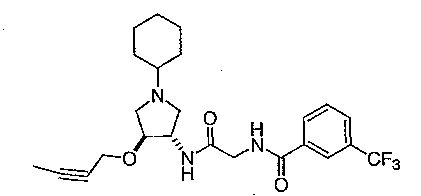 7. Соединение, выбранное из группы, состоящей из: N-(2-{[(3S,4S)-1-циклогексил-4-гидроксипирролидин-3-ил]амино}-2-оксоэтил)-3-(трифторметил)бензамида, N-(2-{[(3S,4S)-4-(бут-2-ин-1-илокси)-1-циклогексилпирролидин-3-ил]амино}-2-оксоэтил)-3-(трифторметил)бензамида, N-(2-{[(3S,4S)-4-(бензилокси)-1-циклогексилпирролидин-3-ил]амино}-2-оксоэтил)-3-(трифторметил)бензамида, N-(2-{[(3S,4S)-1-циклогексил-4-(пиридин-2-илметокси)пирролидин-3-ил]амино}-2-оксоэтил)-3-(трифторметил)бензамида, N-(2-{[(3S,4S)-1-циклогексил-4-(пиридин-3-илметокси)пирролидин-3-ил]амино}-2-оксоэтил)-3-(трифторметил)бензамида, N-(2-{[(3S,4S)-4-гидрокси-1-(4-гидрокси-4-фенилциклогексил)пирролидин-3-ил]амино}-2-оксоэтил)-3-(трифторметил)бензамида, N-(2-{[(3S,4S)-4-гидрокси-1-(4-гидрокси-4-пиридин-2-илциклогексил)пирролидин-3-ил]амино}-2-оксоэтил)-3-(трифторметил)бензамида, N-[2-({(3S,4S)-4-гидрокси-1-[4-гидрокси-4-(4-метилфенил)циклогексил]пирролидин-3-ил}амино)-2-оксоэтил]-3-(трифторметил)бензамида, N-[2-({(3S,4S)-4-гидрокси-1-[4-гидрокси-4-(3-метилфенил)циклогексил]пирролидин-3-ил}амино)-2-оксоэтил]-3-(трифторметил)бензамида, N-[2-({(3S,4S)-4-гидрокси-1-[4гидрокси-4-(2-метилфенил)циклогексил]пирролидин-3-ил}амино)-2-оксоэтил]-3-(трифторметил)бензамида, N-[2-({(3S,4S)-1-[4-(4-бромфенил)-4-гидроксициклогексил]-4-гидроксипирролидин-3-ил}амино)-2-оксоэтил]-3-(трифторметил)бензамида, N-[2-({(3S,4S)-1-[4-(3-бромфенил)-4-гидроксициклогексил]-4-гидроксипирролидин-3-ил}амино)-2-оксоэтил]-3-(трифторметил)бензамида, N-[2-({(3S,4S)-1-[4-(4-хлорфенил)-4-гидроксициклогексил]-4-гидроксипирролидин-3-ил}амино)-2-оксоэтил]-3-(трифторметил)бензамида, N-[2-({(3S,4S)-1-[4-(3-хлорфенил)-4-гидроксициклогексил]-4-гидроксипирролидин-3-ил}амино)-2-оксоэтил]-3-(трифторметил)бензамида, N-[2-({(3S,4S)-4-гидрокси-1-[4-гидрокси-4-(4-трифторметилфенил)циклогексил]пирролидин-3-ил}амино)-2-оксоэтил]-3-(трифторметил)бензамида, N-[2-({(3S,4S)-4-гидрокси-1-[4-гидрокси-4-(3-трифторметилфенил)циклогексил]пирролидин-3-ил}амино)-2-оксоэтил]-3-(трифторметил)бензамида, N-[2-({(3S,4S)-4-гидрокси-]-[4-гидрокси-4-(2-трифторметилфенил)циклогексил]пирролидин-3-ил}амино)-2-оксоэтил]-3-(трифторметил)бензамида, N-[2-({(3S,4S)-4-гидрокси-1-[4-гидрокси-4-(4-метоксифенил)циклогексил]пирролидин-3-ил}амино)-2-оксоэтил]-3-(трифторметил)бензамида, N-[2-({(3S,4S)-4-гидрокси-1-[4-гидрокси-4-(3-метоксифенил)циклогексил]пирролидин-3-ил}амино)-2-оксоэтил]-3-(трифторметил)бензамида, N-[2-({(3S,4S)-4-гидрокси-1-[4-гидрокси-4-(2-метоксифенил)циклогексил]пирролидин-3-ил}амино)-2-оксоэтил]-3-(трифторметил)бензамида, N-[2-({(3S,4S)-4-гидрокси-1-[4-гидрокси-4-(3,4-метилендиоксифенил)циклогексил]пирролидин-3-ил}амино)-2-оксоэтил]-3-(трифторметил)бензамида, N-(2-{[(3S,4S)-4-гидрокси-1-(4-гидрокси-4-пиридин-3-илциклогексил)пирролидин-3-ил}амино}-2-оксоэтил)-3-(трифторметил)бензамида, N-(2-{[(3S,4S)-4-гидрокси-1-(4-гидрокси-4-пиридин-4-илциклогексил)пирролидин-3-ил]амино}-2-оксоэтил)-3-(трифторметил)бензамида, N-(2-{[(3S,4S)-4-гидрокси-1-(4-гидрокси-4-пиридин-2-илциклогексил)пирролидин-3-ил]амино}-2-оксоэтил)-3-(трифторметил)бензамида, N-[2-({(3S,4S)-4-гидрокси-1-[4-гидрокси-4-(6-метоксипиридин-3-ил)циклогексил]пирролидин-3-ил}амино)-2-оксоэтил]-3-(трифторметил)бензамида, N-[2-({(3S,4S)-1-[4-(6-этоксипиридин-3-ил)-4-гидроксициклогексил]-4-гидроксипирролидин-3-ил}амино)-2-оксоэтил]-3-(трифторметил)бензамида, N-(2-{[(3S,4S)-1-(4-циано-4-фенилциклогексил)-4-гидроксипирролидин-3-ил]амино}-2-оксоэтил)-3-(трифторметил)бензамида, N-[2-({(3S,4S)-1-[4-(4-фторфенил)циклогексил]-4-гидроксипирролидин-3-ил}амино)-2-оксоэтил]-3-(трифторметил)бензамида, N-(2-([(3S,4S)-4-гидрокси-1-(4-пиридин-2-илциклогексил)пирроли