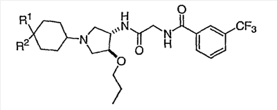 Дополнительной целью настоящего изобретения является создание производных 3-аминопирролидина и их применение в качестве модуляторов рецепторов хемокинов.