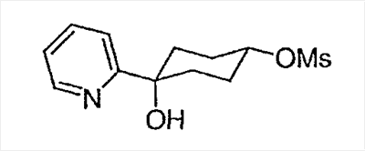 Спирт со стадии A (изомер с более высоким Rf, 0,290 г, 1,11 ммоль) растворяют в ТГФ (10 мл) в атмосфере азота. Добавляют хлористоводородную кислоту (2,0 мл, 4,0М водный раствор, 8,0 ммоль) и смесь перемешивают в течение 4 часов при комнатной температуре. Смесь затем разбавляют NaHCO3/H2O и дважды экстрагируют этилацетатом. Экстракты промывают насыщенным раствором соли, сушат над MgSO4, фильтруют и концентрируют, получая светло-желтое твердое вещество, 0,204 г (85%). Неочищенный продукт 2 используют непосредственно на следующей стадии без дополнительной очистки. 1ЯМР (CDCl3) : 8,74 (с, 1H), 8,52 (д, 1H), 7,72 (дт, 1H), 7,30 (дд, 1H), 2,66 (дт, 1H), 2,53 (м, 2H), 2,41 (т, 1H), 2,18 (т, 1H), 2,13 (д, 1H), 2,09 (м, 1Н), 1,99 (м, 1H), 1,89 (м, 1H), 1,62 (м, 2H).