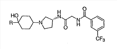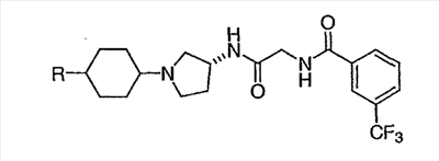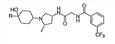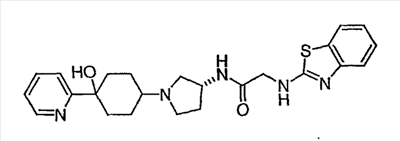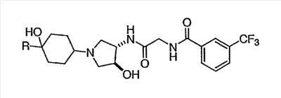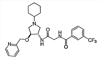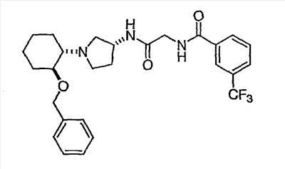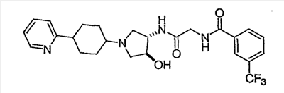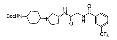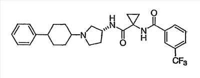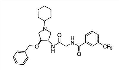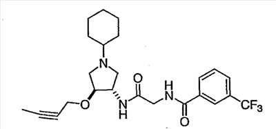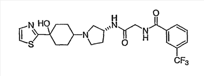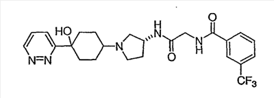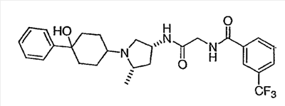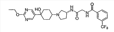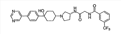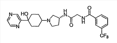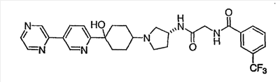 N-[2-({(3R)-1-[4-гидрокси-4-(4-пиримидин-2-илфенил)циклогексил]пирролидин-3-ил}амино)-2-оксоэтил]-3-(трифторметил)бензамид.