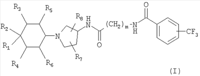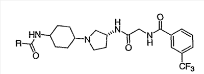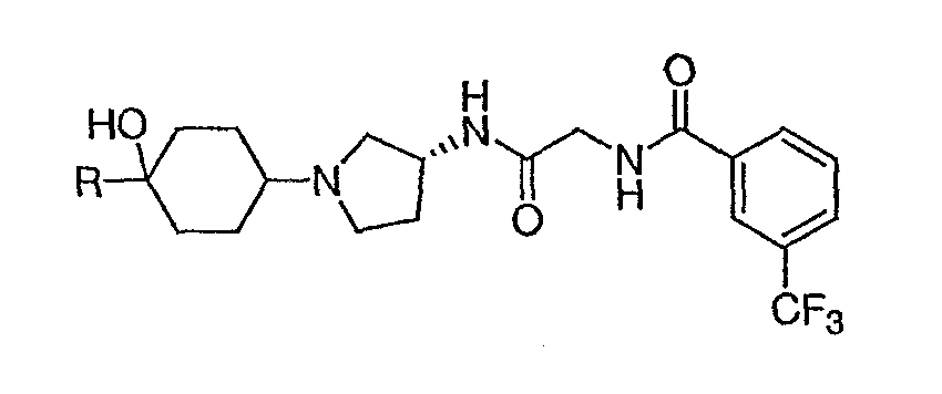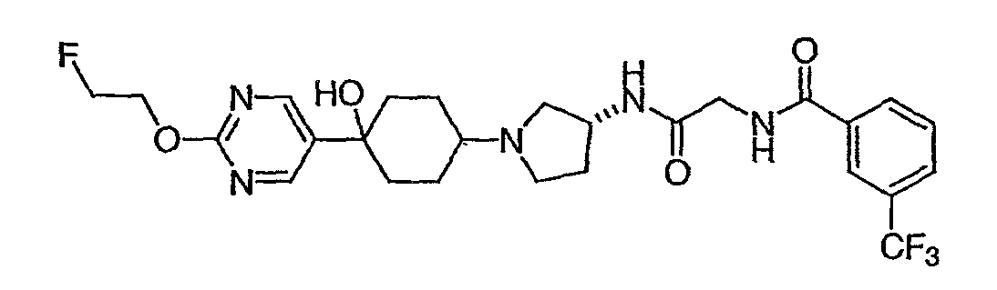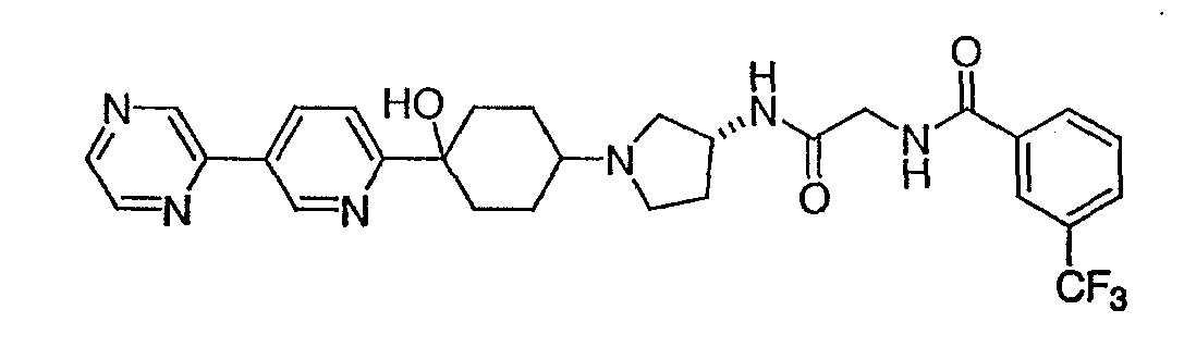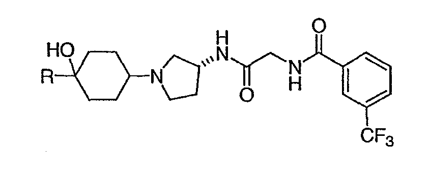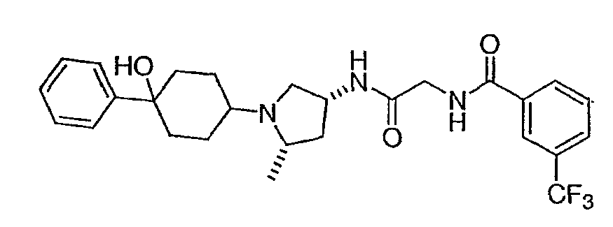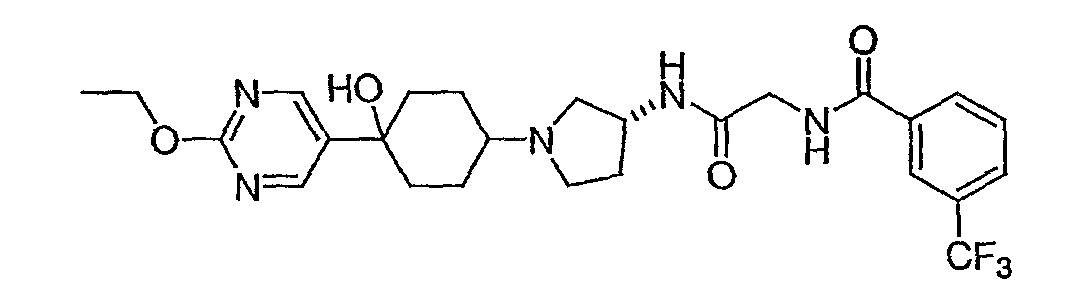 12. Соединение по п.1, представляющее собой N-({(3R)-1-[4-гидрокси-4-(6-метоксипиридин-3-ил)циклогексил]пирролидин-3-илкарбамоил}метил)-3-трифторметилбензамид.