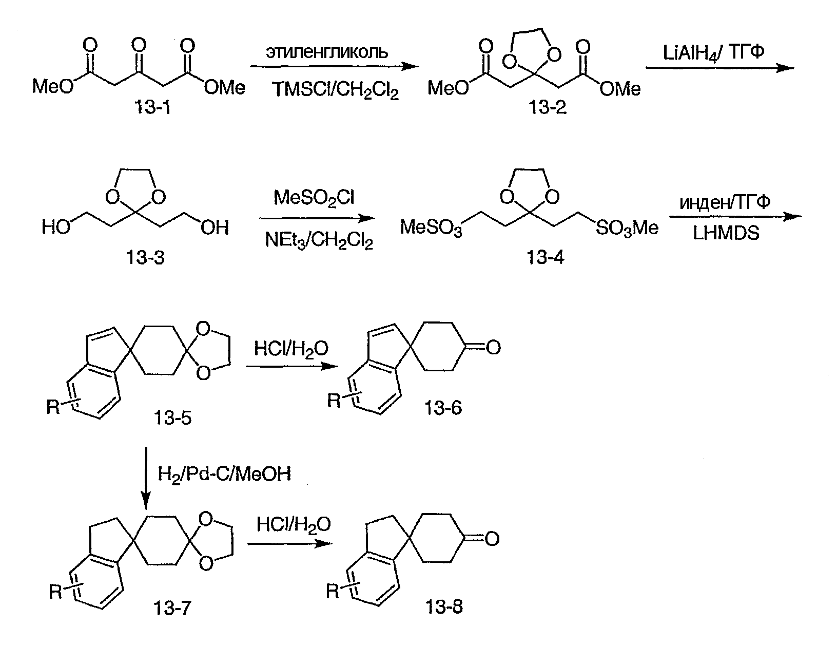 необязательно R3 и R4 или R5 и R6 циклизованы с образованием мостиковой бициклической системы, содержащей этиленовый мостик;
