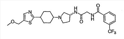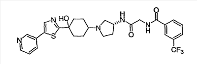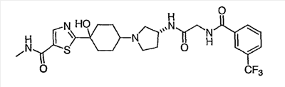 N-[2-({(3R)-1-[4-гидрокси-4-(3-метилизотиазол-5-ил)циклогексил]пирролидин-3-ил}амино)-2-оксоэтил]-3-(трифторметил)бензамид.