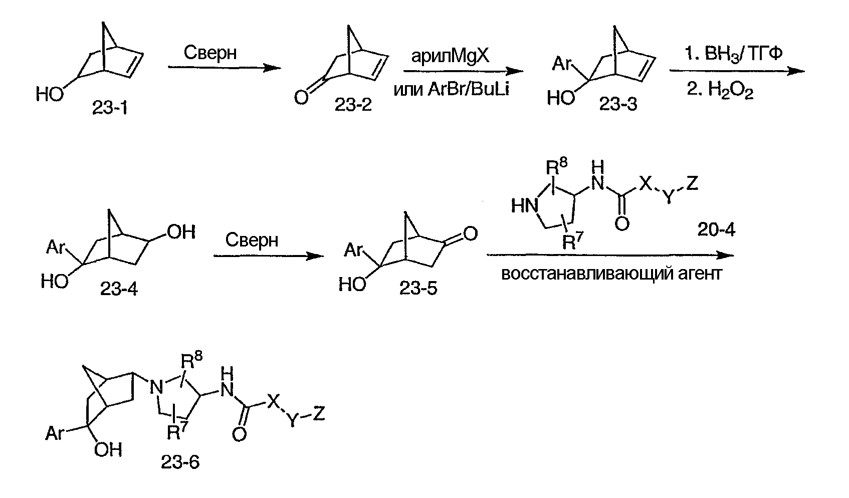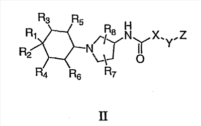 где значения X, Y, Z, R1, R2, R3, R4, R5, R6, R7 и R8 подробно раскрыты ниже при описании предпочтительных вариантов; ради краткости следует указать, что каждая из групп заместителей определена как наиболее предпочтительная подгруппа соответствующих групп заместителей, как определено для соединений формулы I.