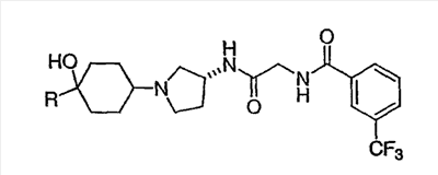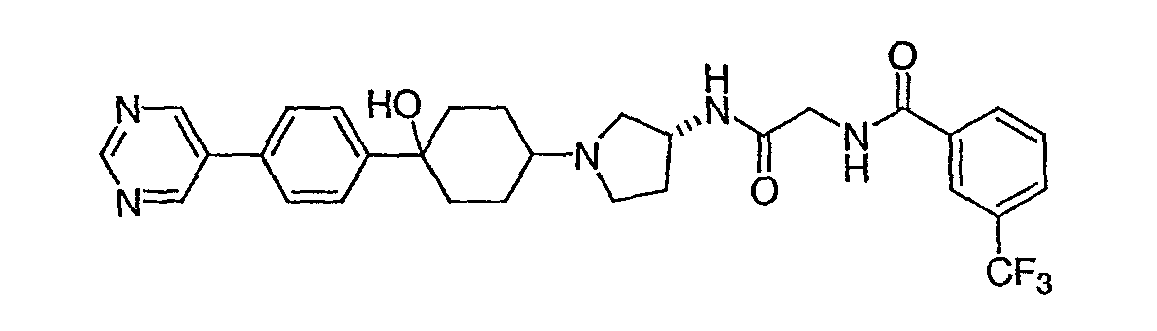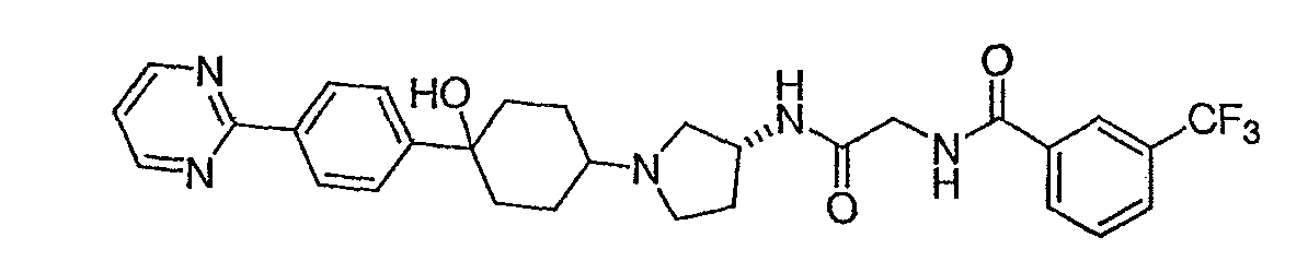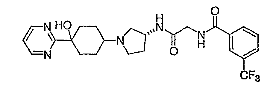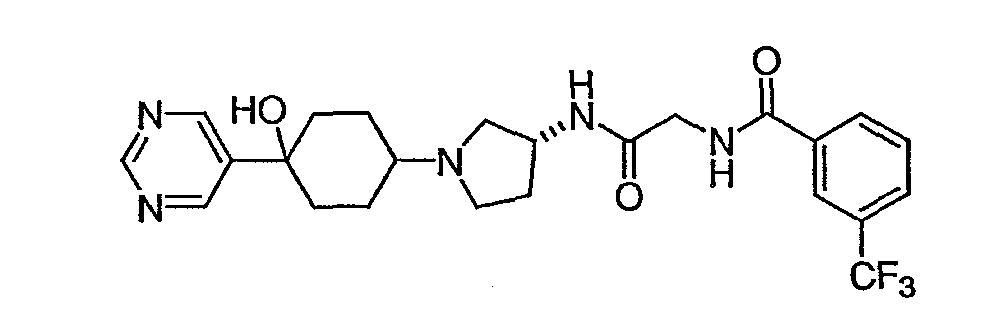 13. Соединение по п.1, представляющее собой N-{[(R)-1-(4-гидрокси-4-пиримидин-2-илциклогексил)пирролидин-3-илкарбамоил]метил}-3-трифторметилбензамид.