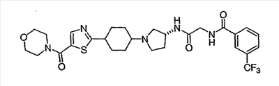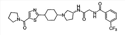 N-(2-{[(3R)-1-(4-гидрокси-4-изотиазол-5-илциклогексил)пирролидин-3-ил]амино}-2-оксоэтил)-3-(трифторметил)бензамид.