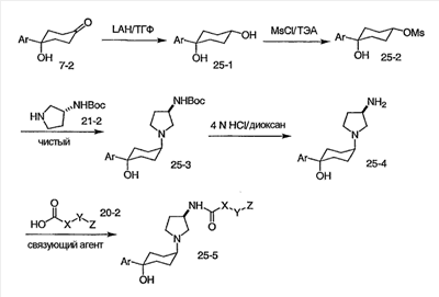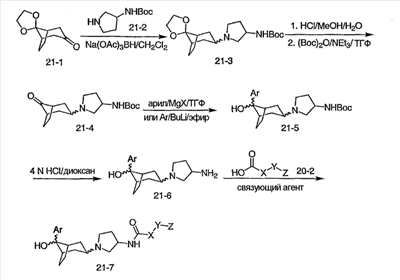 Еще одной целью настоящего изобретения является создание производных 3-аминопирролидина и их применение в качестве модуляторов CCR5 рецепторов.
