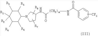 Далее настоящее изобретение относится к способу модулирования активности рецепторов хемокинов у млекопитающих, который включает введение эффективного количества соединения формулы I или II или III.