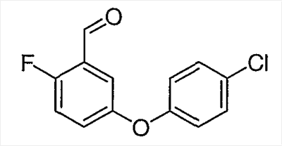 К раствору 2,2,6,6-тетраметилпиперидина (5,1 г, 40 ммоль) в ТГФ (150 мл), охлажденному до 0°С, добавляли н.-бутиллитий (1,6М в гексане, 25 мл, 40 ммоль). Полученный раствор охлаждали до -75°С и добавляли 4-хлор-4′-фтордифениловый эфир (4,5 г, 20 ммоль) в ТГФ (40 мл). После выдерживания при -75°С в течение 1,5 часов реакционную смесь обрабатывали диметилформамидом (4,4 г, 60 ммоль) и нагревали до 0°С. Смесь выливали в разбавленную хлористоводородную кислоту (0,5н, 200 мл) и экстрагировали этилацетатом (2×100 мл). Удаление растворителя и хроматорафирование на силикагеле, элюируя смесью 1:9 этилацетат:гексан, обеспечивало получение соединения, указанного в заголовке.