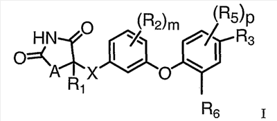 9. Соединение по п.1, в котором А представляет О; R1 представляет СН3; каждый R4 независимо выбирается из группы, состоящей из Cl, -ОСН3 и -OCF3; R5 представляет F; R6 представляет н-С3Н7; m равно 0; n равно 1 или 2; и р равно 0 или 1.