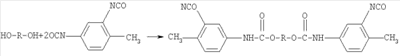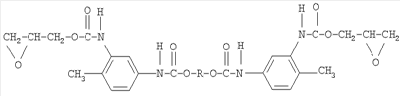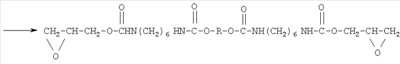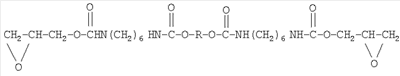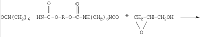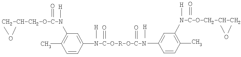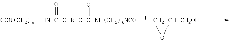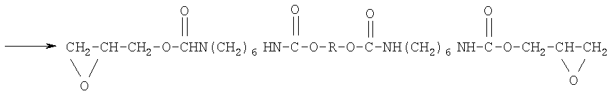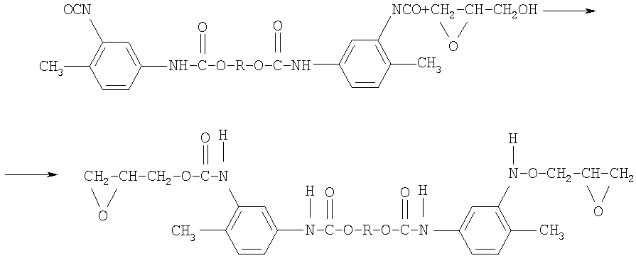 Изобретение относится к области получения глицидилавидных полимеров, а именно к полиглицидилазиду, модифицированному тетрагидрофураном (ТГФ), который используют в качестве энергоемкого горючего связующего в смесевом твердом ракетном топливе и порохе. Известно получение полиглицидилазида из книги Н.Г.Рогова, М.А.Ищенко, «Смесевые ракетные топлива: Компоненты. Требования. Свойства.» Санкт-Петербург 2005 г с.110, взятое авторами за прототип, где азидополиэфирэпоксид – аналогичное по структуре соединение: Получают азидополиэфирэпоксид путем взаимодействия полиглицидилазида с фосгеном, с образованием промежуточных хлоругольных эфиров, которые затем этерифицируют глицидолом. Недостатками данного способа являются: применение высокотоксичного фосгена и необходимость в использовании специального коррозионно-стойкого оборудования, т.к. в процессе реакции выделяется хлористый водород. Задачей данного изобретения является получение полиглицидилазида, модифицированного ТГФ, с концевыми эпоксидными группами с улучшенными физико-механическими характеристиками: прочность Полиглицидилазид, модифицированный ТГФ, с концевыми эпоксидными группами имеет следующую формулу: Или n=10-20, m=1-2 Способ получения полиглицидилазида, модифицированного тетрагидрофураном, с концевыми эпоксидными группами, заключается в том, что полиглицидилазид, модифицированный тетрагидрофураном, подвергают взаимодействию с избыточным количеством 1,6-гександиизоцианата или 2,4-толуилендиизоцианата при температуре 55±5°С в течение 7 часов с образованием форполимера с концевыми изоцианатными группами, определяют содержание гидроксильных групп, этерифицируют глицидолом при температуре 60±5°С в течение 5 часов, определяют содержание изоцианатных групп, вакуумируют при температуре 65±5°С и остаточном давлении 2-3 мм рт.ст. и определяют содержание эпоксидных групп. На первой стадии получают форполимер. Или n=10-20, m=1-2 На второй стадии полученный форполимер этерифицируют глицидолом. Или Сущность изобретения представлена на примерах получения полиглицидилазида в две стадии. Пример 1 а. Стадия получения форполимера с концевыми изоцианатными группами В 4-горлую круглодонную колбу емкостью 250 мл, снабженную механической мешалкой, термометром, обратным холодильником и капельной воронкой, помешают 100 г (1,04 моль) полиглицидилазида, модифицированного тетрагидрофураном, включают мешалку и при комнатной температуре прикапывают 20 г (0,12 моль) 1,6-гександиизоцианата. Реакционную массу нагревают до 55±5°С и выдерживают при этой температуре 7 часов. В конце выдержки по ИК-спектру следят за исчезновением полосы, характерной для ОН-группы, и появлением полос, отвечающих за появление уретановой группы. Для подтверждения образования форполимера проводят анализ основных функциональных групп химическими методами. Содержание изоцианатных групп, % Рассчитано: NCO – 3,63 Найдено: NCO – 3,5 ОН – отсутствие ИК-спектр, см-1: 1100-1150 (-O-), 1650-1720 3300 – 3400 (-NH-), 1270, 2100-2150 (-N3-), 2260 (-NCO-) б. Стадия получения полиглицидилазида, модифицированного тетрагидрофураном, с концевыми эпоксидными группами В 3-горлую круглодонную колбу емкостью 250 мл, снабженную механической мешалкой, термометром и обратным холодильником, помещают 120 г (1,04 моль) форполимера и 4,9 г (0,07 моль) глицидола. Включают мешалку и нагревают реакци