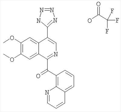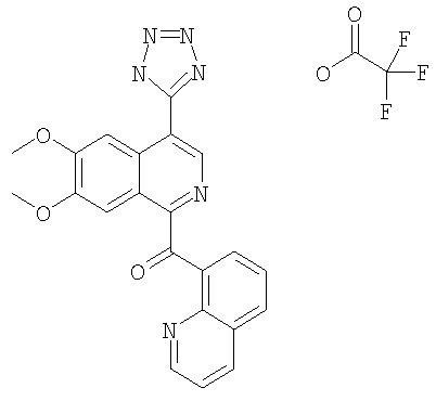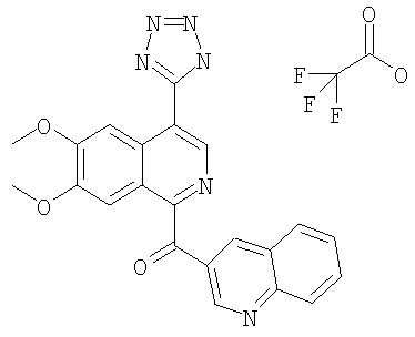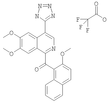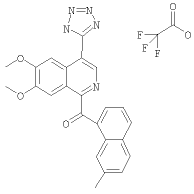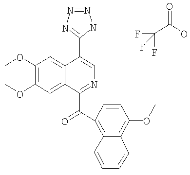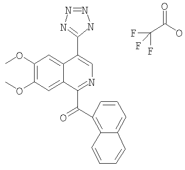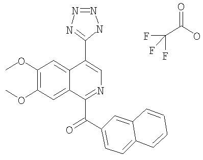 Указанное соединение получали в виде твердого вещества аналогично тому, как описано в примере 1, но при замене 2-нафтальдегида (0,26 ммоля) на 3-хинолинкарбоксальдегид (0,26 ммоля). МС-ЖХ: (m/е) рассч. для С22Н16Н6О3 413 (MH+), найд. 413. Пример 3 Трифторацетат [6,7-диметокси-4-(1Н-тетразол-5-ил)изохинолин-1-ил]-(4-метоксинафталин-1-ил)метанона