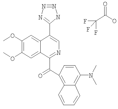 Указанное соединение получали в виде твердого вещества аналогично тому, как описано в примере 1, но при замене 2-нафтальдегида (0,26 ммоля) на 4-метокси-1-нафтальдегид (0,26 ммоля). МС-ЖХ: (m/е) рассч. для C24H19N5O4 442 (МН+), найд. 442. Пример 4 Трифторацетат [6,7-диметокси-4-(1Н-тетразол-5-ил)изохинолин-1-ил](4-диметиламинонафталин-1-ил)метанона