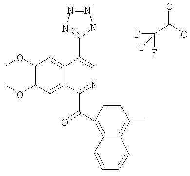 Указанное соединение получали в виде твердого вещества аналогично тому, как описано в примере 1, но при замене 2-нафтальдегида (0,26 ммоля) на 1-нафтальдегид (0,26 ммоля). МС-ЖХ: (m/е) рассч. для C23H17N5O3 412 (МН+), найд. 412. Пример 6 Трифторацетат [6,7-диметокси-4-(1Н-тетразол-5-ил)изохинолин-1-ил] (4-метилнафталин-1-ил)метанона