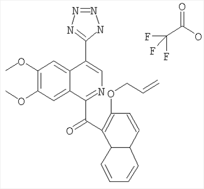 Указанное соединение получали в виде твердого вещества аналогично тому, как описано в примере 1, но при замене 2-нафтальдегида (0,26 ммоля) на 4-метил-1-нафтальдегид (0,26 ммоля). МС-ЖХ: (m/е) рассч. для C24H19N5O3 426 (МН+), найд. 426. Пример 7 Трифторацетат (2-аллилоксинафталин-1-ил)[6,7-диметокси-4-(1Н-тетразол-5-ил)изохинолин-1-ил]метанона Указанное соединение получали в виде твердого вещества аналогично тому, как описано в примере 1, но при замене 2-нафтальдегида (0,26 ммоля) на 2-аллилокси-1-нафтальдегид (0,26 ммоля). МС-ЖХ: (m/е) рассч. для C26H21N5O4 468 (MH+), найд. 468. Пример 8 Трифторацетат [6,7-диметокси-4-(1Н-тетразол-5-ил)изохинолин-1-ил](7-метилнафталин-2-ил)метанона